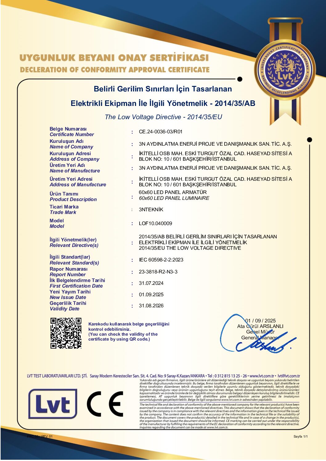 | LOF10 / Alçı T. | 72 W | 7.200 | 3000/4000/6500 | 100 lm/W | 595x1200x35 mm | 5 | 1220x640x275 mm | 19.20 kg |