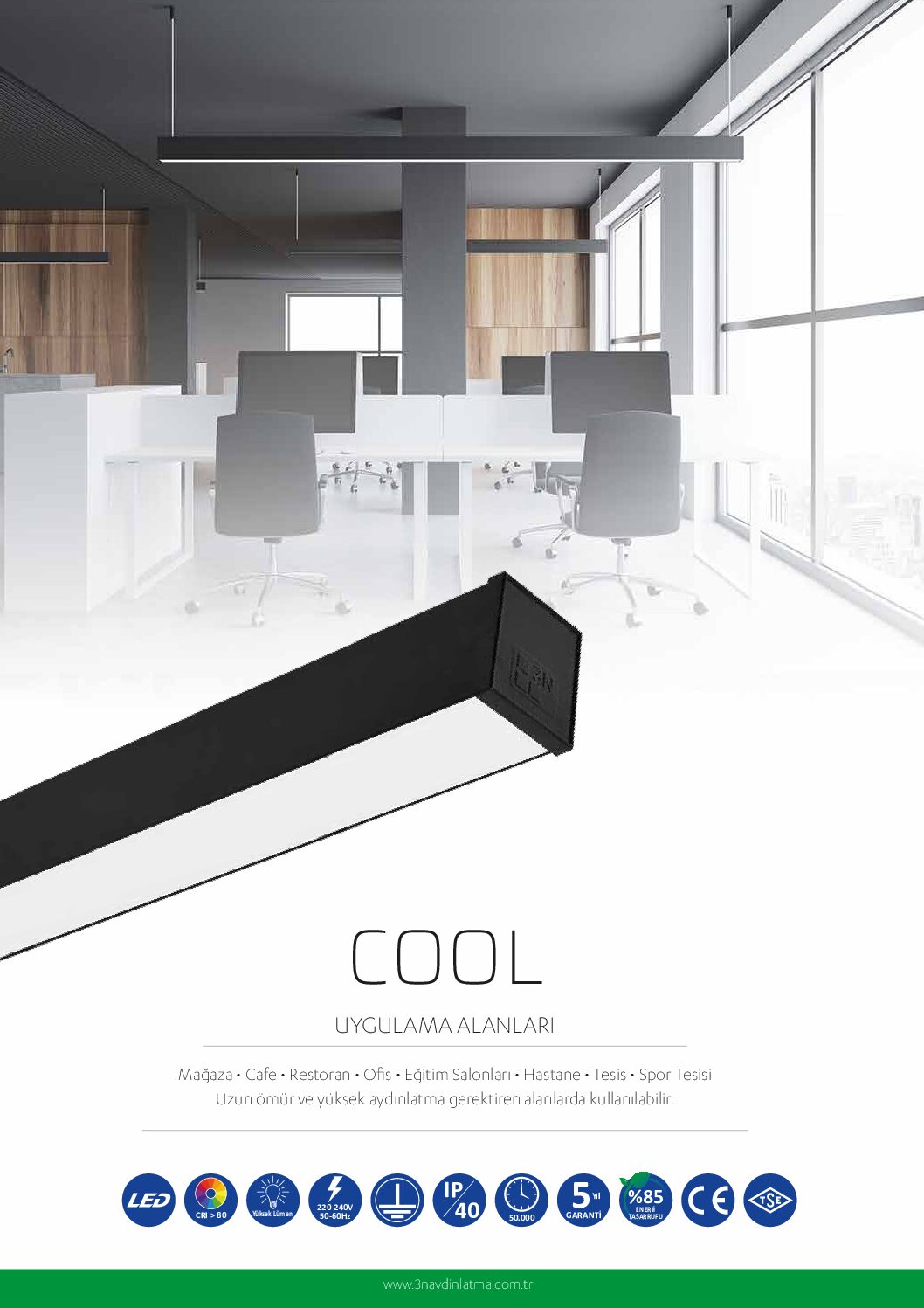 | Opsiyonlar | Gövde Renk Seçenekleri: RAL9016 / RAL7001 Uygulama Seçenekleri: Sıva Üstü / Sarkıt Renk Sıcaklığı: 3000K / 4000K / 6500K Acil Kit – DALI |