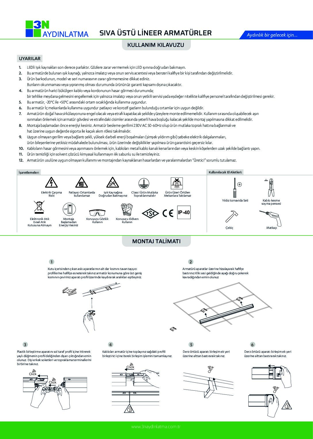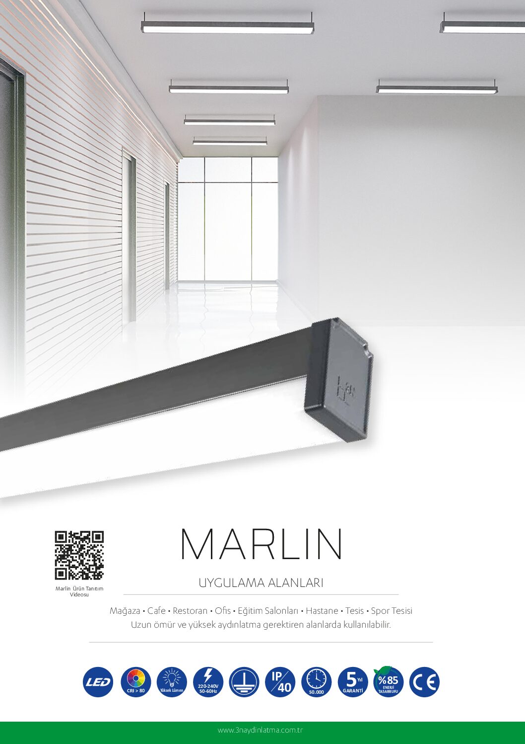 LLN80 40 W 4.000 3000/4000/6500 100lm/W 1420x40x50 mm 12 1430x170x180 mm 11.40 kg