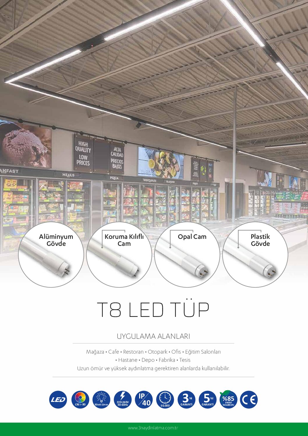 | Opsiyonlar | Renk Sıcaklığı : Meat / Fish / Bakery / Fresh Acil Kit – Tek Giriş – Çift Giriş |